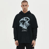 Custom Skull Pattern Fake Two Piece Dark Punk Hoodies | DTG | Oversized Long Sleeve Hooded Sweatshirts