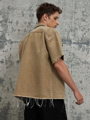 Vintage washed short-sleeve shirt made of high-end denim fabric with top-notch wash. Support OEM/ODM