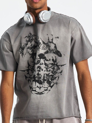 Custom Unique Street Art Print Gray Washed T-Shirt for Men