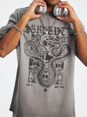 Custom Men's Vintage Washed Snake Graphic T-Shirt
