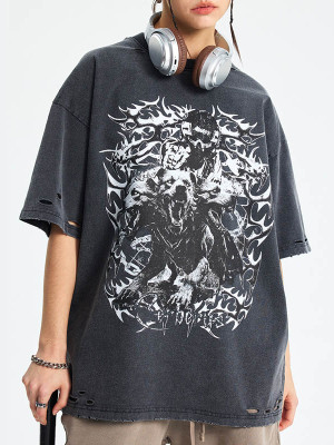 Unique Street Art Custom Black Washed Animal Print T-shirt Men