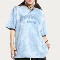 Custom American Street Vintage Gradient Print T-Shirt | Tie-dye & Puff Printing | 100% Cotton