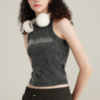 Vintage washed tight sleeveless undershirt with fried snowflake and hot diamond process, blended washed fabric. Support OEM ODM