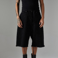 Custom Retro Studded Rhinestone Denim Shorts | Washed & Rhinestone | 100% Cotton Denim Fabric