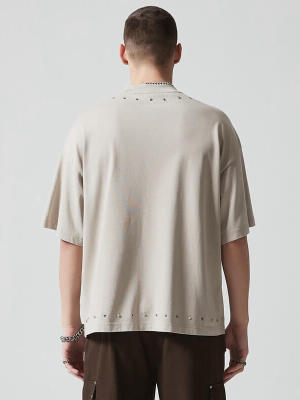 Custom Rivet Eyelet Letter Print T-shirt | 305G 100% Cotton Fabric | OEM T-Shirts Manufacturer