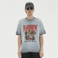 Custom Vintage Graphic T-shirts | Cowboy Skull Smoking Print | 230GSM Cotton Knit Fabric | OEM & ODM