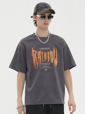 Custom Vintage Graphic T-shirts | Flaming Letter Print | 260GSM Suede Fabric | OEM & ODM