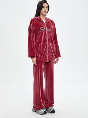 An elegant and luxurious retro hoodie set with high-end velvet fabric and rhinestone prints for a luxurious feel.
