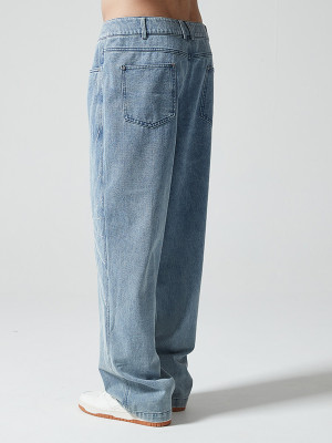 Loose-fitting washed denim jeans, made from high-quality pure cotton denim fabric with unique chain embroidery. Support OEM/ODM