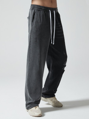 Custom Loose Fit Vintage Washed Sweatpants | Blank Print | Stretchy Denim Fabric | OEM Service