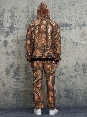Oversized leaf-camouflage knit hoodie and pants set, 360g 100% cotton—ideal for streetwear brands seeking bold prints and urban style.