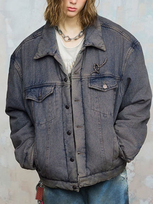 Custom Vintage Washed Cotton-Padded Jacket | Washed-out Effect | Blended Denim Fabric | OEM/ODM