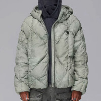 Custom Vintage Thick Puffer Jacket | Pleated Diamond Pattern | Dyed Woven Fabric | OEM/ODM