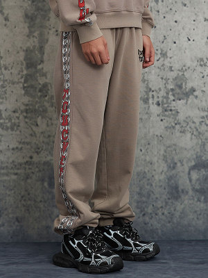 ORI2405010 oversized sweatpants in 380g 100% cotton knit, featuring water-washed retro letter prints and embroidery—perfect for vintage-inspired streetwear collections.