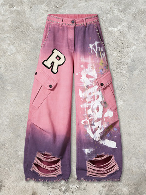 Sharpen your streetwear edge with these cargo pants. Splash paint, rips, prints, rivets, and embroidery unite for a rugged, artistic and eye-catching style.