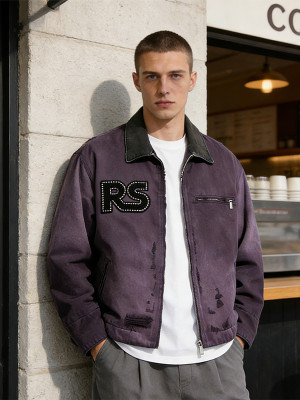 Custom Vintage Spray Color Workwear Jacket | Patch & Towel Embroidery | Washed | OEM/ODM