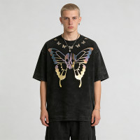 Washed laser film heat transfer butterfly print Sonic Wear T-shirt, perfect for festivals and custom streetwear orders.