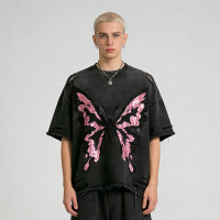 Custom Sonic Wear Washed Distressed Sequin T-shirt | Streetwear | Rhinestone | Custom Clothing Manufacturer